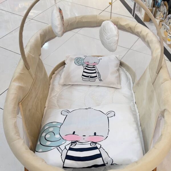 گهواره ننو سنتی ۸طناب مخمل دانینی فیل و زرافه کرم |