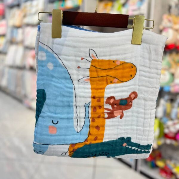 پتو دورپیچ موسلین طرحدار کرم |