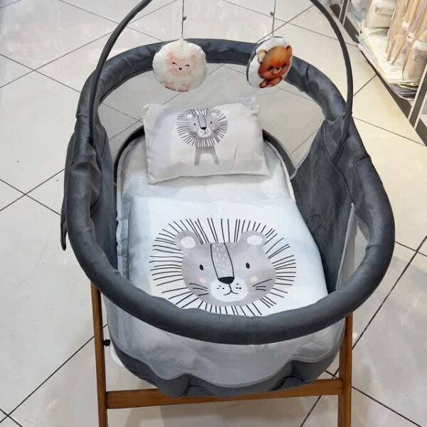 گهواره ننو سنتی ۸طناب مخمل دانینی خرس و ماه طوسی |
