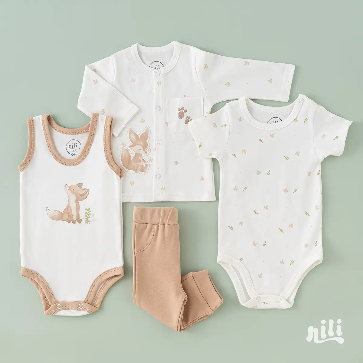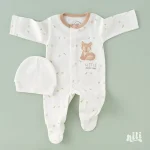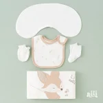 • این ست شامل: زیردکمه آستین کوتاه، زیردکمه رکابی، سرهمی جورابدار، مانتو، شلوار، پیشبند، کلاه گرد، یک جفت جوراب، یک جفت دستکش، آروغ گیر، دورپیچ نخی کلاه دار